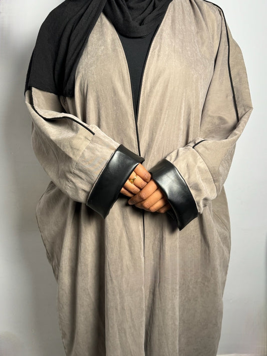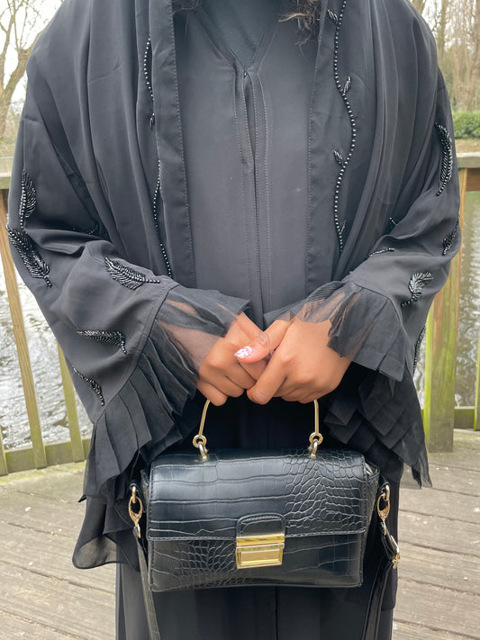 This stylish handmade abaya has been made with our customers in mind. Made with premium fabric, it can be dressed up and dressed down. It can also be worn open or closed. It comes with a matching hijab with detailing at the front.